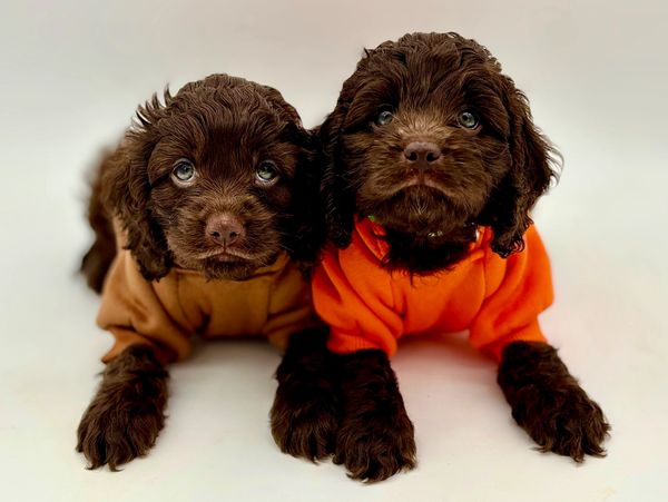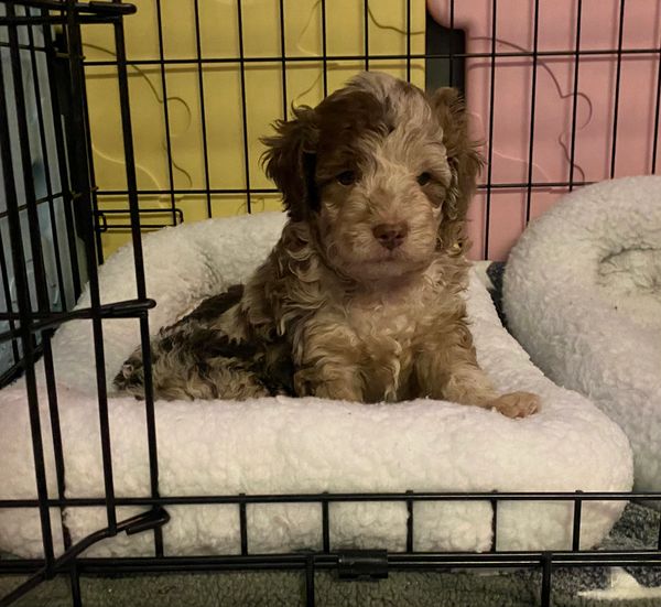 Both Cockapoos and Cavapoos are highly intelligent. They are a wonderful blend of both easily trained breeds. Our Cavapoo and cockapoos typically weigh between 14-18lbs full grown. We produce a variety of coat colors and patterns. Including red, black, black tri, chocolate tri, merle, chocolate, and chocolate merle patterns. We raise both F1 cavapoos (50% poodle and 50% cavalier) and F1b Cavapoos (75% poodle and 25% cavalier). We also raise F1 cockapoos (50% poodle and 50% cocker spaniel) or F1b (75% poodle and 25% cocker spaniel). Cavapoos have very expressive faces and the most soulful eyes. Cavapoos and cockapoo‘s are not likely to shed and have wavy to curly coats. Cockapoos tend to be on the calmer side and are true lap babies. Cavapoos also love to be at your side. Both Cavapoo and cockapoos enjoy out door activities. Making them both absolute cuddle bugs and tiny adventure partners.