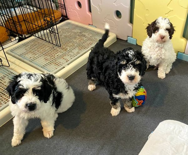 Adoption fee's for our Bernedoodles start at $2,200 and up. Depending on gender, generation of Bernedoodle, coat color/pattern, and size.